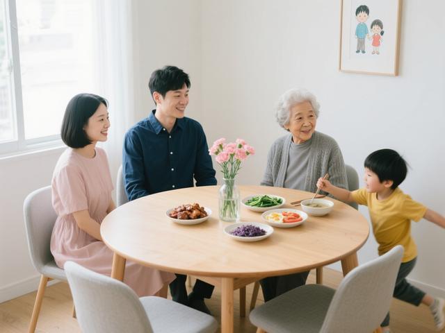 圆桌的围合感是长桌难以替代的——家人围坐时,彼此距离均等,眼神交流更自然交汇,尤其适合有三代同堂的家庭,能减少 “被冷落” 的感觉。